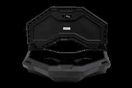 High strength polyethylene material cargo box with UV stabilizers to fight against fading • Rubber sealed lid to keep out dust and water • Two lockable latches • Bolts in place • Front dimensions: 864mm (34”) L x 457mm (18”) W x 178mm (7”) H • Rear dimensions: 1,016mm (40”) L x 559mm (22”) W x 305mm (12”) H • Black Brute Force® 300 (12-25) Front
