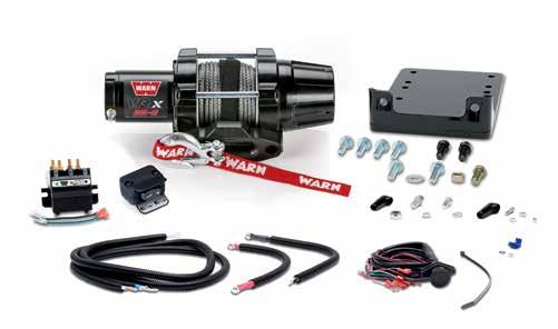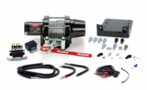VRX 25 includes 50’ of durable ¼” steel rope, roller fairlead, and zinc-plated hook • 2,500 lb. capacity available for the hardest-working UTVs • Load-holding brake • Durable all-metal construction • New clutch design based on legendary WARN 4WD hub lock know-how • Complete waterproof sealing helps keep all the elements out • Semi-gloss back powder-coated finish and stainless steel fasteners for corrosion resistance • Smooth and reliable all-metal threestage planetary gear train • Limited lifetime warranty (mechanical), 3 year warranty (electrical) • KAF00019A Large Roller Fairlead recommended with plow WARN the WARN logo, GO PREPARED and THE RED HOOK STRAP are registered trademarks of Warn Industries, Inc. AXON VRX and ProVantage are trademarks of Warn Industries, Inc.