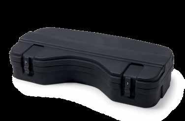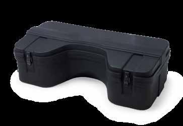 High strength polyethylene material cargo box with UV stabilizers to fight against fading • Rubber sealed lid to keep out dust and water • Two lockable latches • Bolts in place • Front dimensions: 864mm (34”) L x 457mm (18”) W x 178mm (7)” H • Rear dimensions: 1,016mm (40”) L x 559mm (22”) W x 305mm (12”) H • Black
