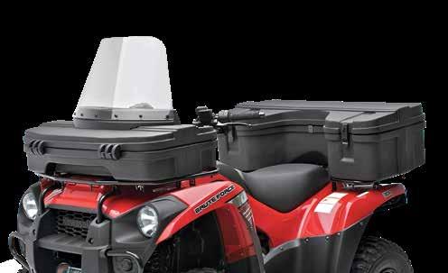 KQR™ Rear Cargo Box attaches quickly with NEW KQR™ mounts • Ample internal storage space for transporting tools, equipment, straps, tie-downs, emergency kits, trail snacks, etc. • Multiple bungee cord attachment points around lid perimeter • KQR™ Rear Cargo Box outer dimensions 615mm (24.2”) L x 1157mm (45.6”) W x 361mm (14.2”) H • Material: Molded LDPE black plastic • Requires one Cargo Bed KQR™ Mount (99994-1782), sold separately