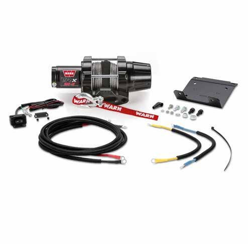 VRX 25-S includes 50’ of lightweight, easy-to-handle ¼˝ synthetic rope, hawse fairlead, and zinc-plated hook • 2,500 lb. capacity available for the hardestworking UTVs • Load-holding brake • Durable all-metal construction • New clutch design based on legendary WARN 4WD hub lock know-how