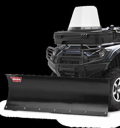 Mount is located at the front of the vehicle - no need to crawl under the ATV • Easy-on, easy-off thanks to self-locating pin design • No need to remove mount during non-plowing seasons • No reduction in ground clearance • The Plow Base assembly features an extra wide design for increased stability and durability, a forward trip system, and an interlocked rotating base plate for great strength, outstanding durability, and excellent impact resistance • ProVantage™ straightblade is made from thick 12-gauge steel with heavyduty ribbing and a center cross member for added rigidity • Boxed design adds extra support • Requires Plow Mount (KW81202), Plow Base (KW92100), and 1,372mm (54”) Plow Blade (KW78954) for a complete system • Also requires a winch and winch mount (K99994-0318) to lift plow ∙ Synthetic Rope (KW73599) and Fairlead (KAF90-001) with large roller are recommended