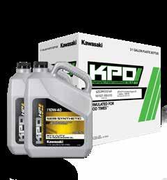 KPO Conventional 4-Stroke Engine Oil utilizes highquality base oils and additives for a formulation that keeps your Kawasaki’s engine and transmission clean and efficient, making it the right choice for owners who want a quality engine oil at a great price