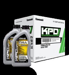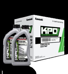 KPO Semi-Synthetic 4-Stroke Engine Oil has been blended with high-quality base oils and superior synthetic oil to keep your Kawasaki protected and performing at its best • Optimum engine lubrication over the wide range of temperatures and operating conditions • Superior engine and bearing wear protection • Prolonged engine life through improved engine cleanliness and reduced oil volatility • Stay in grade viscosity performance • Excellent bearing corrosion protection • Recommended in gasoline applications requiring API SN, JASO MA2 engine oil • Dealer package quantity 12 Quart, 10W-40