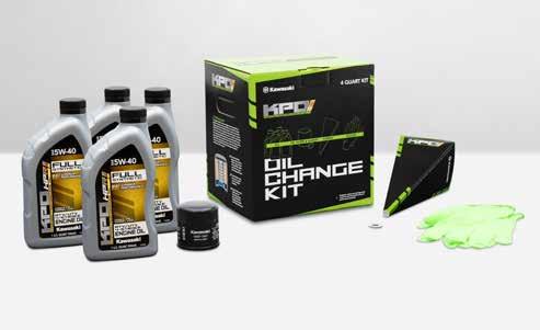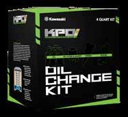 Every Oil Change Kit includes the correct amount of Performance Oil, a genuine Kawasaki oil filter, the required drain bolt sealing washer and/or oil filter o-ring, plus one pair of disposable gloves and a disposable funnel.