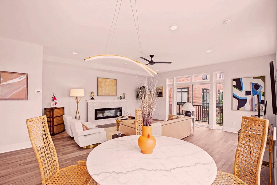 Each residence exudes an extremely open and gracious interior. Find contemporary light fixtures, quartz or granite counter-tops throughout, and high-end flooring on every level Watch light stream through all angles of your residence, coming from the floor-to-ceiling windows opening up to quaint balcony off the kitchen