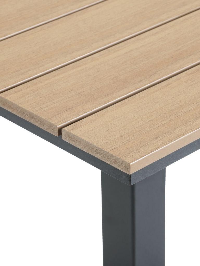 Aluminium og DURAWOOD® komposittre. DURAWOOD® er et slitesterkt materiale som består av FSC®-hardtrefiber og plast. B92 x L160 x H74 cm