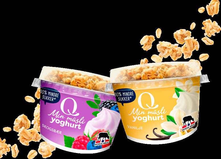 Q har en bred portefølje av yoghurter for enhver brukssituasjon. Q yoghurt har en frisk og god smak som gjør dette til et perfekt mellommåltid. Yoghurtene er laget av fersk norsk melk og smaksatt med frukter og bær.