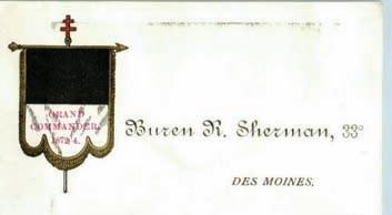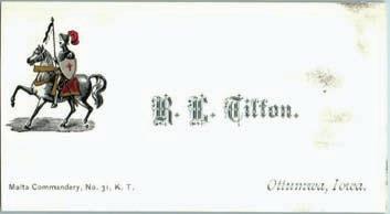 Today's modern book classifications may differ according to Fiction versus Non-Fiction, Biographies, Music, etc., but the same distinctions still pretty much prevail. In addition to his Dewey Decimal card-catalog, Sir Knight Theo Parvin had a sizable collection of Masonic business cards. He, himself, had his own fraternal card and he encouraged other Masons of the various Degrees to personalize their name, their mark, or their unique design on a card. Parvin had sort of a clip-mounted Rolodex system upon which he could easily sort through the cards. Here is just a small sampling of his collection.