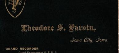 Theodore Sutton Parvin was a legendary Templar Grand Recorder with immense friends. He was born January 15, 1817, in New Jersey and died at his Iowa home in 1901. He studied law, served three terms as a probate judge, and was involved in numerous other civic posts. Parvin was one of the founders of the Grand Lodge for the State of Iowa. Additionally, he served for many years – not only as Grand Recorder of Iowa's Grand Commandery – but also as Grand Recorder of the Grand Encampment.