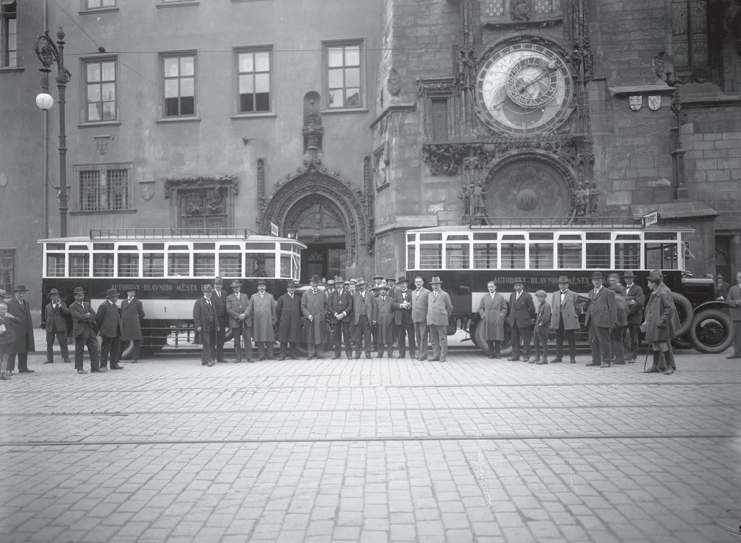 První tuzemský autobus Laurin & klement HOP vyfotografovaný v roce 1908. snímek byl pořízen v tramvajové vozovně Centrála v Holešovicích, kde měly garáže první čtyři pražské autobusy. autobus Laurin & klement HOP pražské elektrické podniky zakoupily dne 8. ledna 1908 za 24 500 korun.