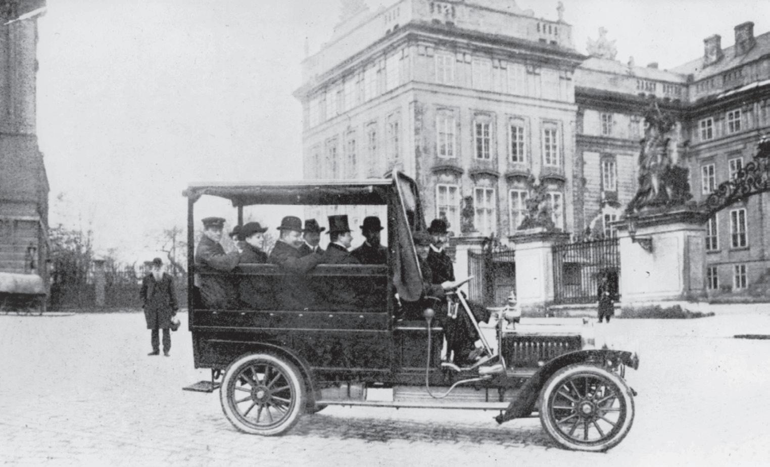 4. Autobus Fiat na Křižovnickém náměstí, kolem roku 1908