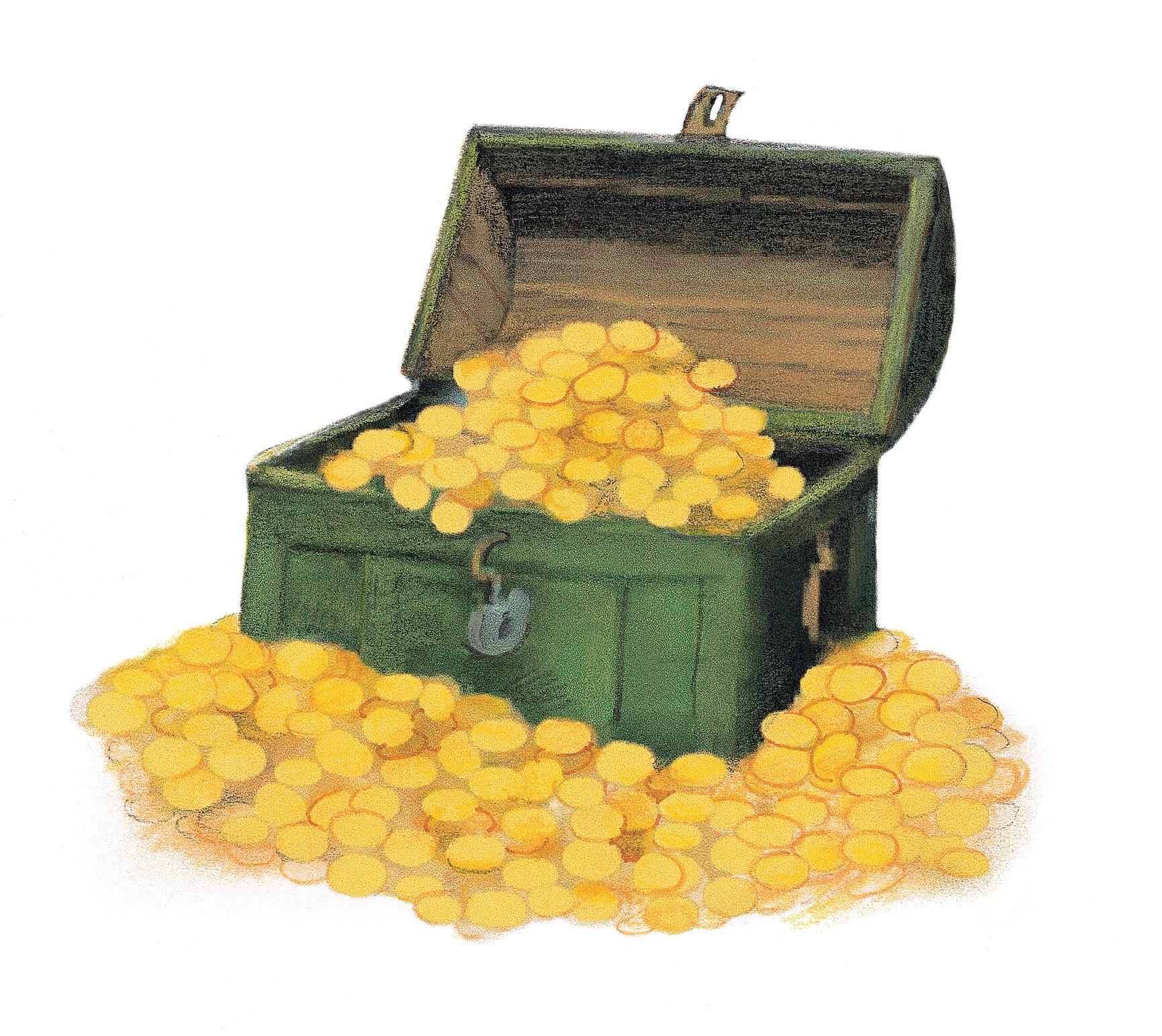 Honza běžel ke stromu, aprotože neměl ssebou ani rýč, ani motyku, popadl strom do rukou avytrhl jej iskořeny. Ahle! Pod kořeny se objevil veliký hrnec plný lesklých dukátů. Honza vzal hrnec auháněl domů.