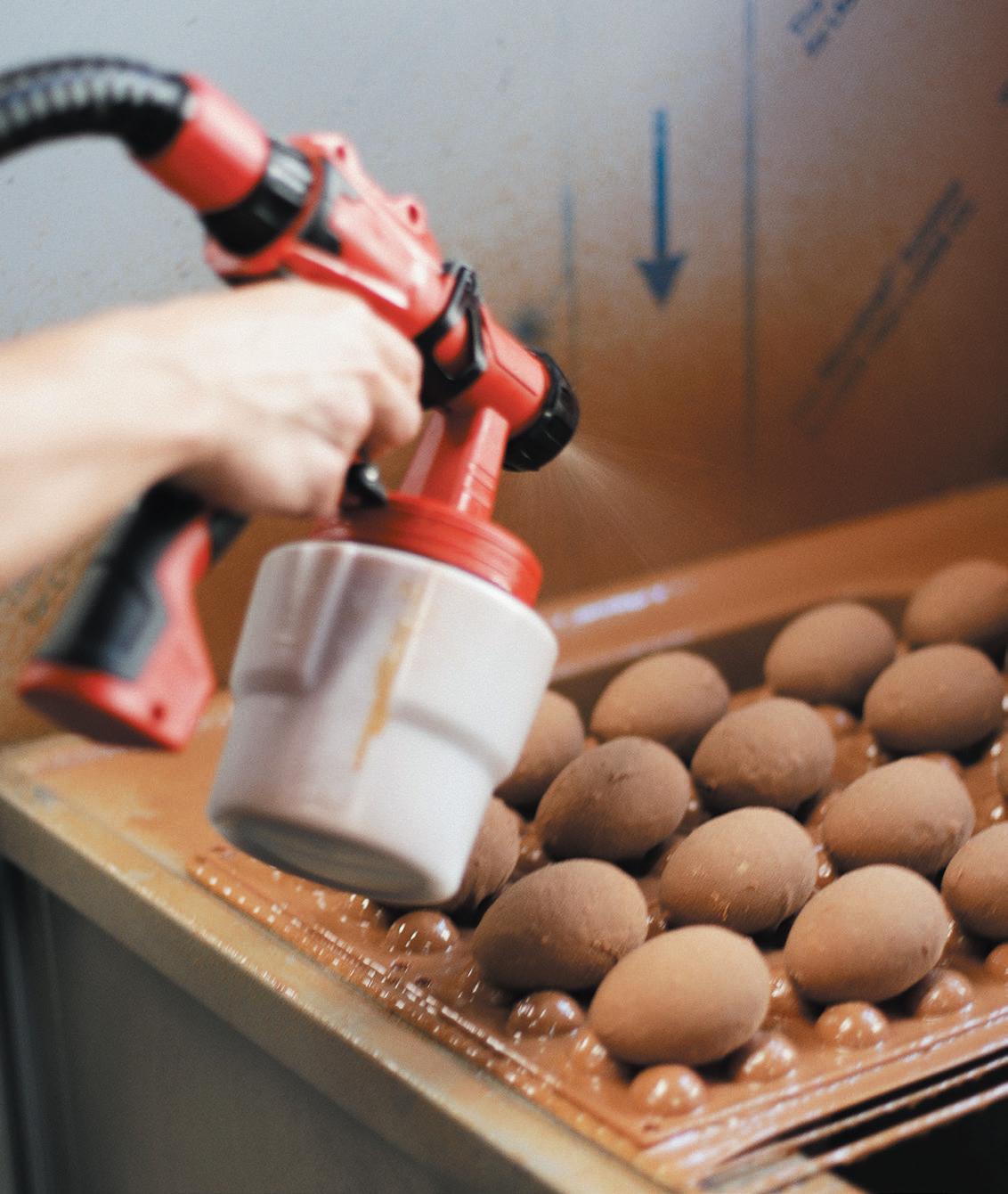 Aby bylo vejce na povrchu pěkně čokoládové, můžete dát rozehřátou čokoládu do cukrářské pistole a nastříkat celé vejce. Před podáváním nechte vejce povolit v ledničce, ať není zmrzlé.