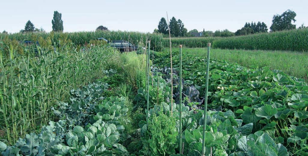 Kromě kukuřice sloužící jako větrolam se ve smíšené výsadbě daří košťálovinám, salátu na semeno a dýni.