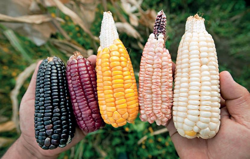 Délka klasu, počet řad, tvar a barva zrn jako příklad genetické diverzity u kukuřice.