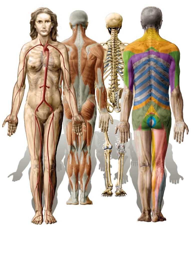 Projekce vnitřních orgánů na povrch těla, pohled zezadu