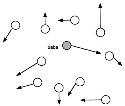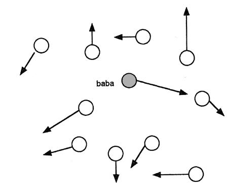 2. První z trojice honí druhého, druhý třetího a třetí prvního. Hráči si počítají, kolikrát babu dali v určené době.