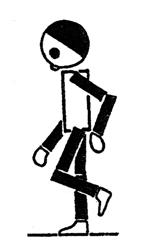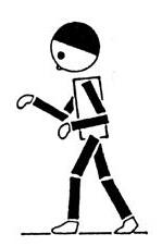 Na pokyn čápi se zastaví, postaví se na jednu nohu a pažemi představují klapání zobáku.