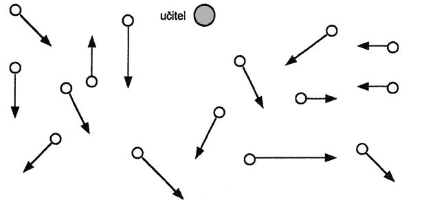 Učitel vymezí území, ve kterém se mohou děti pohybovat, a stanoví základní bezpečnostní omezení. Děti se honí mezi sebou bez organizačních pokynů.