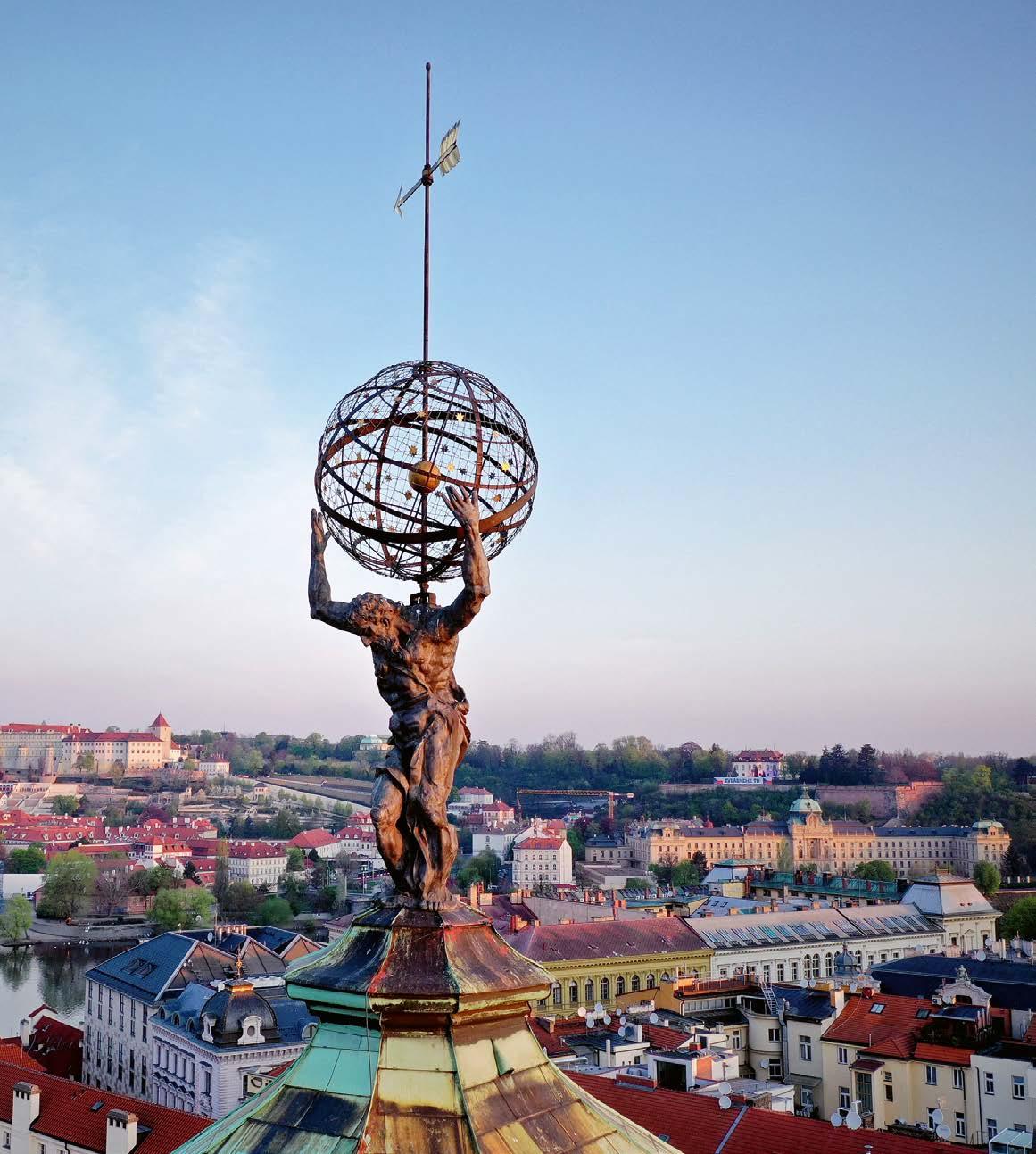 Socha bájného Atlase nesoucího na ramenou tíži světa na vrcholu Astronomické věže Klementina, kde se počasí zapisuje už od roku 1775. Sochu vytvořil Matyáš Bernard Braun (1684–1738), který má několik soch také na pražském Karlově mostě.