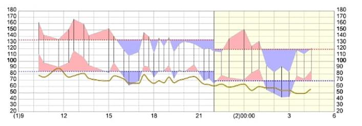 DIA avg (mm Hg)80 (< 85): hraniční88 (< 90): hraniční68 (< 70): normální
