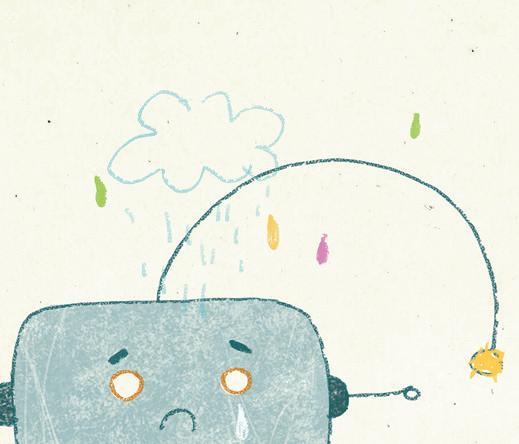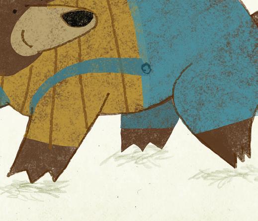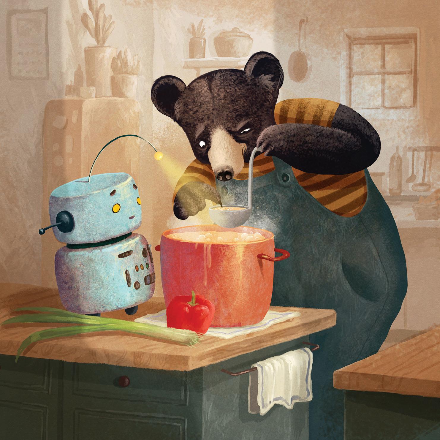 Hledali šroubek s Medvědem, ale nenašli ho. Medvěd by rád Robůtka utěšil, jenže nevěděl jak. Roboti se přece na koně neberou, pomyslel si.