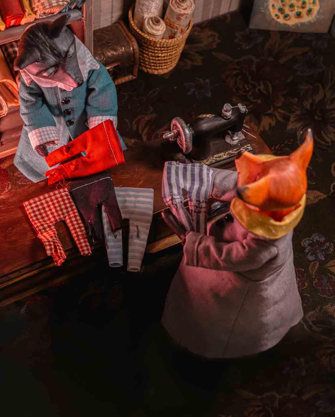 Pan Baron šil oděvy všem široko daleko. Psům, kocourům, jezevcům, liškám, vlkům, myším… zkrátka každému, kdo přišel a zaplatil. I holubům. Ti ale neplatívali moc, těm stačila jen vesta s kapsou na dopisy — a ta byla ušitá raz dva.