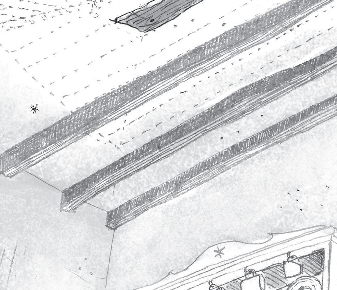 Vilma suše polkla. „Ééé, že to nemám dělat?“ zamumlala, zdráhavě otevřela oči a polekaně sebou trhla. Většina půdy byla ta tam. Zůstalo jen jediné prkno, na němž stáli.