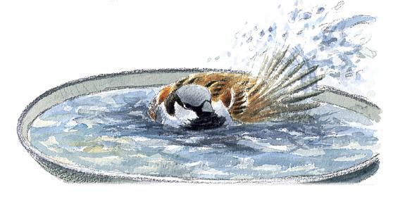Koupadla by neměla být příliš hluboká, aby je mohly využívat i menší druhy – ptáci nepotápí pod vodu celé tělo, pouze ponoří křídla, kterými si pak stříkají vodu na záda.