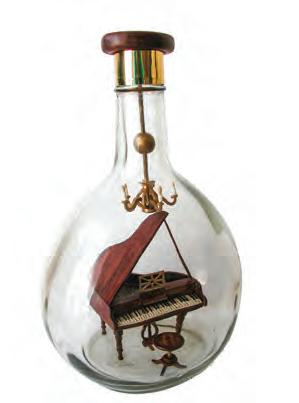 činností. Vytváří modely s takovou přesností a nápaditostí, že se nad nimi každý musí pozastavit a žasnout. V jedné lahvi se odehrává šachová partie, v další boxerský zápas. Jinde stojí čtyři hudebníci na pódiu s nástroji v rukou. Právě tímto dílem vzdává