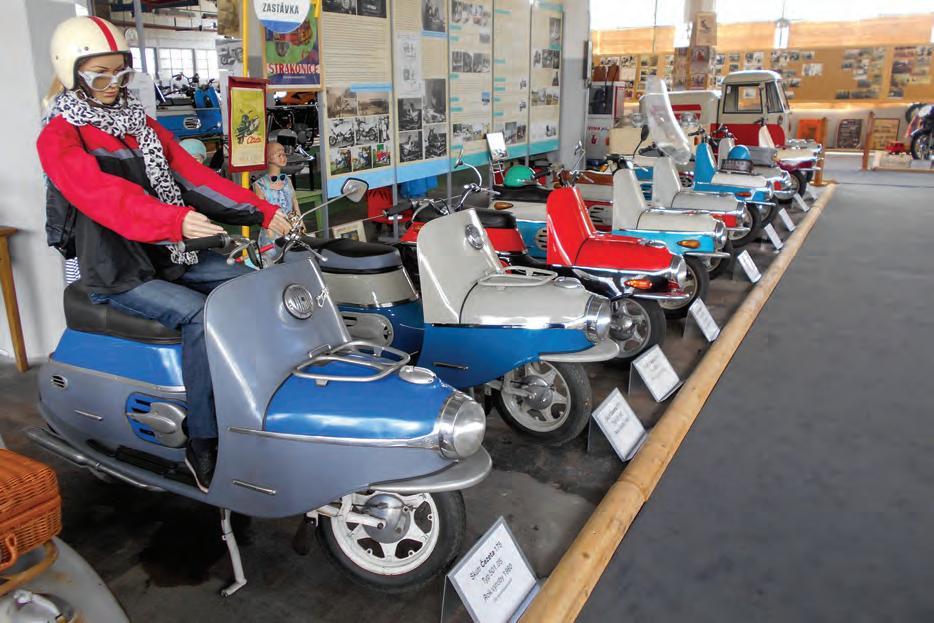 V expozici ale najdete také luxusnější, „frajerské“ mašiny. Skútry se tu vyráběly v letech 1957–1964 a dodnes jsou ikonou šedesátých let i ukázkou tehdejšího výtvarného a životního stylu. I proto po takových krasavcích touží také mladí lidé, kteří se shánějí po veteránech i replikách, renovují je a pořádají různé srazy. Trochu nevábně znějící přezdívka „Prase“, kterou si tvarem přední části tyto stroje vysloužily, je v přímém rozporu s tím, jak elegantně a půvabně tento na oblibě neztrácející klenot působí.
