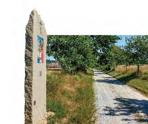 Novinku vytvořili manželé Jan a Pavla Michalikovi ve spolupráci s kamenosochařem a kameníkem Janem Křížem a jeho týmem. Vše začalo debatou o vhodném materiálu. Nakonec byla zvolena proslulá mrákotínská žula, z níž byl vytvořen například i obelisk na nádvoří Pražského hradu. Rozhodlo i její mírně okrové zbarvení, které dokonale ladí s okolní otevřenou krajinou. Cesta využívá stínu starých jabloní a dalších původních stromů, v němž je možné vnímat vůni dozrávajícího obilí a neobyčejně bohaté kolekce lučního kvítí. Lidé rádi usednou na lavičky a stejně jako generace před nimi tu odpočívají, zamýšlejí se nad vyobrazeními a zastavují se i u několika původních kamenných božích muk, jež tu zanechali dávní mistři kameníci. To vše působí velmi harmonicky a poutníka naladí na zážitek, jenž ho čeká před chrámem Nejsvětější Trojice.