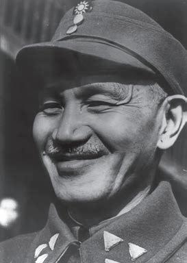 Lídr Kuomintangu generál Čankajšek, personifikovaný symbol boje proti japonským agresorům i čínským komunistům.