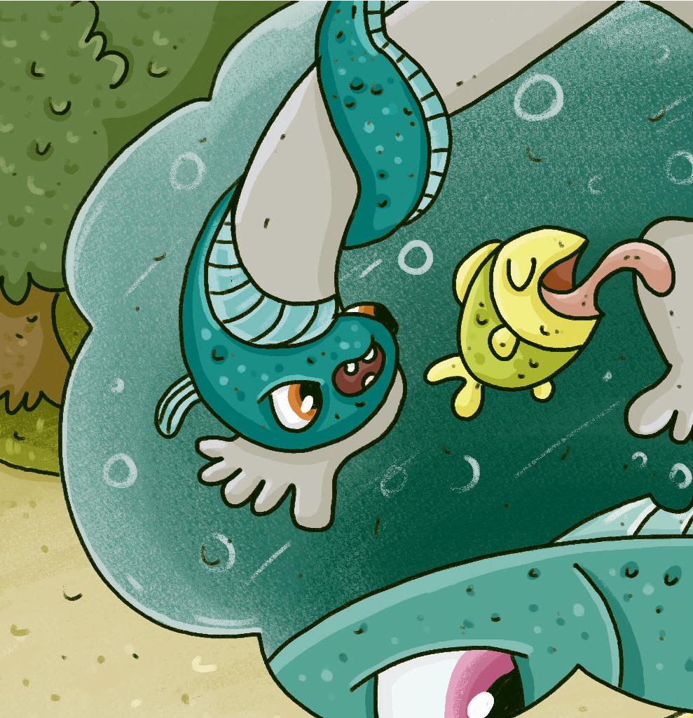 Třeba žáby, hadi a velké ryby, které se jí můžou klidně při koupání otřít o nohu! Kdo by tam vůbec lezl? Jenže na dovolenou se všichni těšili a ji by nikdo nepochopil.
