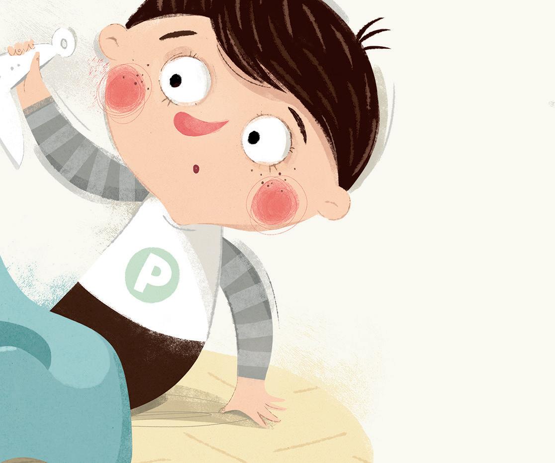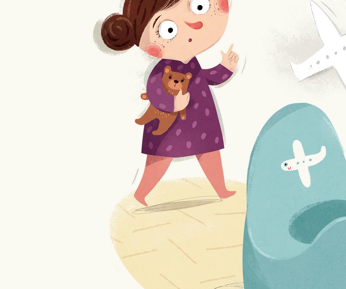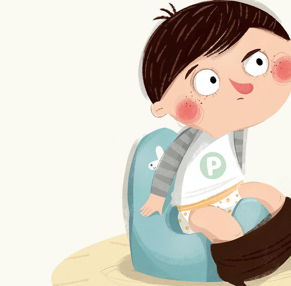 Péťa se na nočník pohodlně posadí. Je speciální, s letadlem. Péťa ho dostal od babičky.
