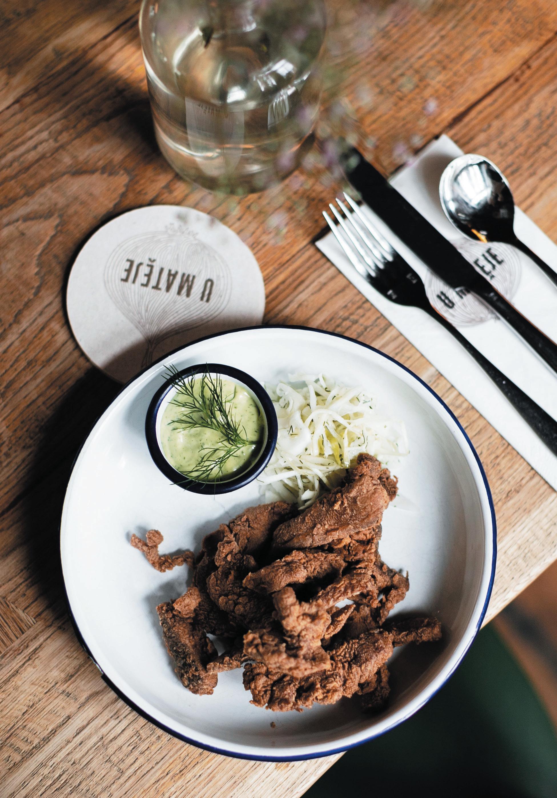 KAPŘÍ HRANOLKY S KOPROVOU MAJONÉZOU A ZELNÝM SALÁTEM