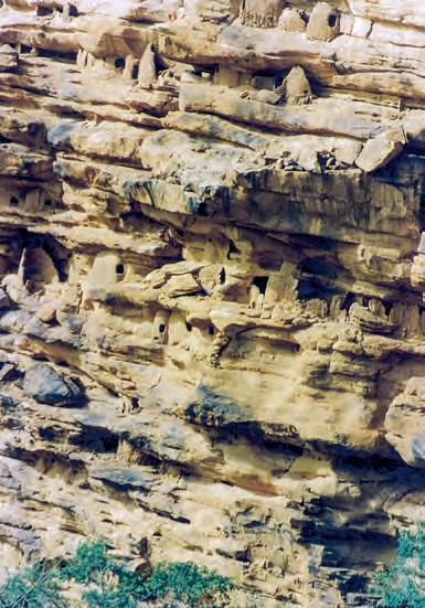 Na kolmé skalní stěně Bandiagary jsou desítky a možná i stovky umělých příbytků. Jejich stavitelé využili přirozeného zvrásnění a přírodních dutin, které místy rozšířili odtesáním kamene. Otevřenou venkovní stranu pak zastavěli hliněnými cihlami. Ve stěně ponechali jen malý otvor pro vstup.