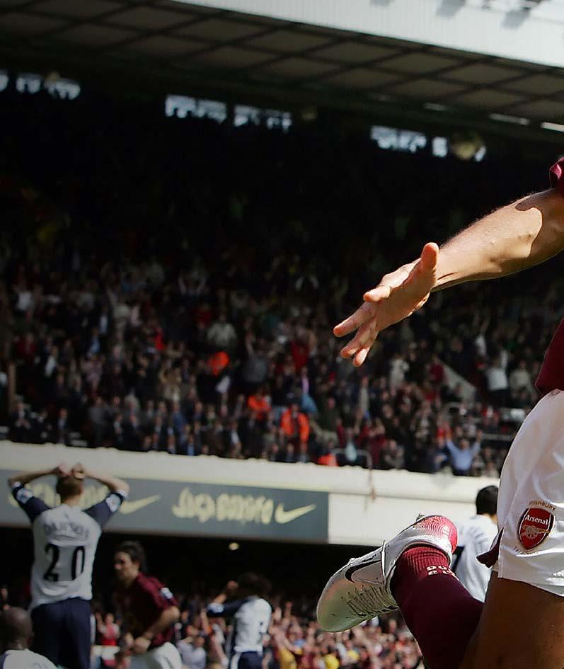 Henry nikdy neprohrál v červenobílém dresu severolondýnské derby, Tottenham porážel znovu a znovu. I když by sám asi tvrdil, že jeho největším momentem bylo vítězství Arsenalu v lize stvrzené na stadionu White Hart Lane, příznivci Kanonýrů by tvrdili, že jeho slalomový průnik proti Spurs v roce 2002 byl ještě lepší. Toho odpoledne vstřelil gól sezóny a oslavil ho přímo před fanoušky soupeře – a to je onen moment, který byl poté zvěčněn jeho sochou.
