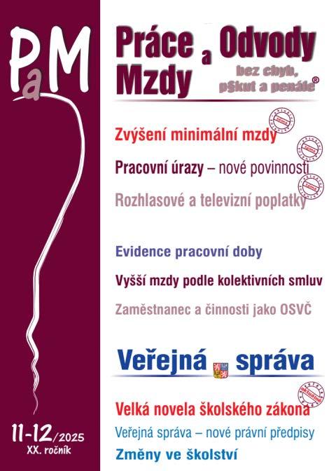 Nestihli jste si předplatit měsíčník PaM ročník 2026? Neváhejte, čekají na Vás zajímavé informace i mnohé předplatitelské výhody. První číslo vyjde již v listopadu. Kromě jiného si přečtete: Zaměstnanecké benefity - osvobození od daně v r. 2026, Ochrana majetkových zájmů zaměstnavatele, Změny ve školním stravování.