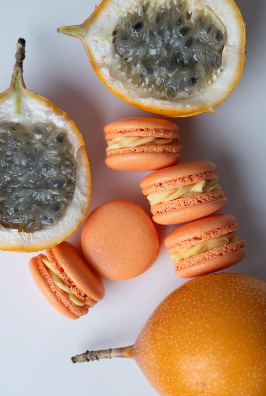 Jako první si spolu vyzkoušíme makronky italskou metodou. Pro slepení těchto konkrétních makronek jsem si pro vás připravila velmi osvěžující ganache z marakujového pyré. Pokud si chcete připravit větší množství makronek, můžete tuto dávku klidně znásobit, rozhodně bych vám ji ale nedoporučovala dělit. Na šlehání sněhu používáme mixér, a pokud by se dávka rozdělila, surovin bylo méně a použil se jen jeden bílek, nemuselo by to dopadnout dobře – se šleháním jednoho bílku má totiž většina kuchyňských (i profesionálních robotů) problém. Sníh pak není dostatečně vyšlehaný do požadované konzistence a může zlobit. Z uvedeného množství surovin připravíte asi 60–70 slepených makronek.