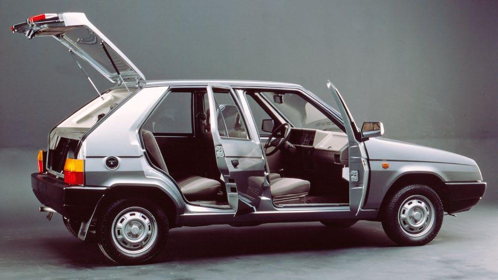 Hatchback Favorit nabízel prostorný interiér přístupný pěti dveřmi