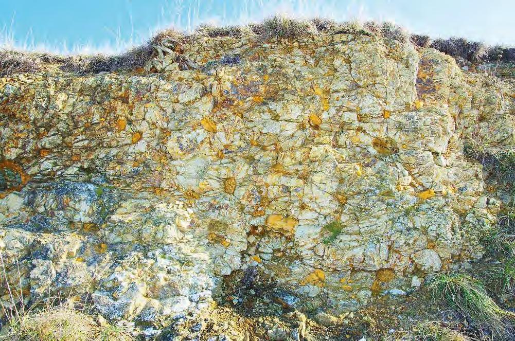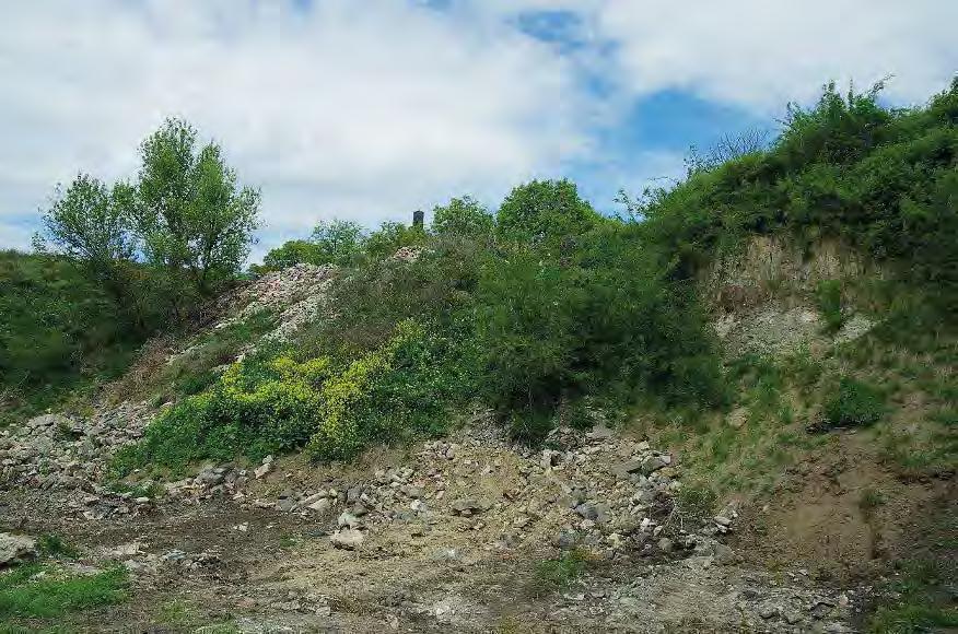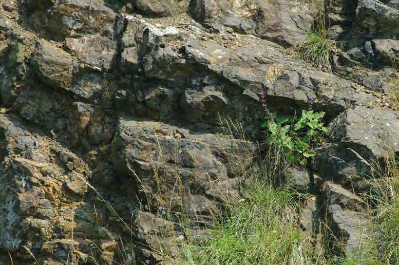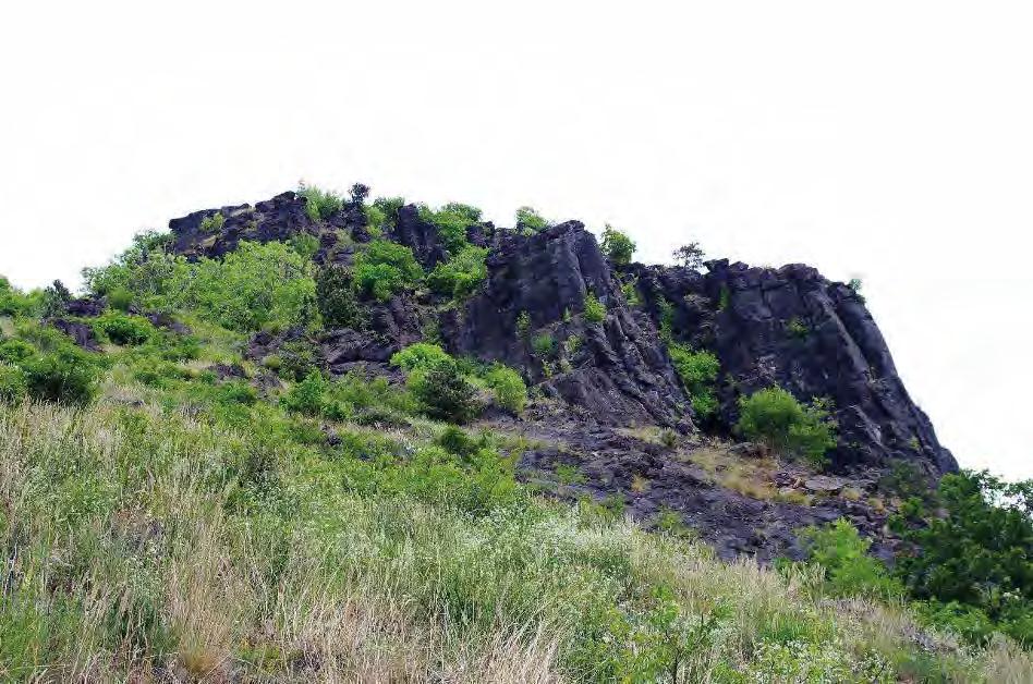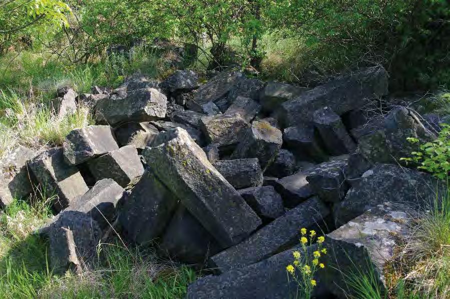 10 cm sféricky rozpraskal. Jistě to nebylo jen díky tepelné kapacitě těchto malých xenolitů a nebudu se mýlit, když předpokládám tehdejší obzvláště vysoký obsah vody ve slínovci, z něhož tyto xenolity jsou. V tichu skrytého místa jsem si proto představoval, že slyším vulkán, jeho supění, prskání unikajících par, rány a praskání spečeného a chladnoucího sopečného popela. Během čtvrtohorních klimatických zvratů podporujících zvětrávání a odnos hornin ze sopečného kužele se z původního vnitřku malého vulkánu stal tento vypreparovaný pahrbek se skalní stěnou odkrytou lidským přičiněním.