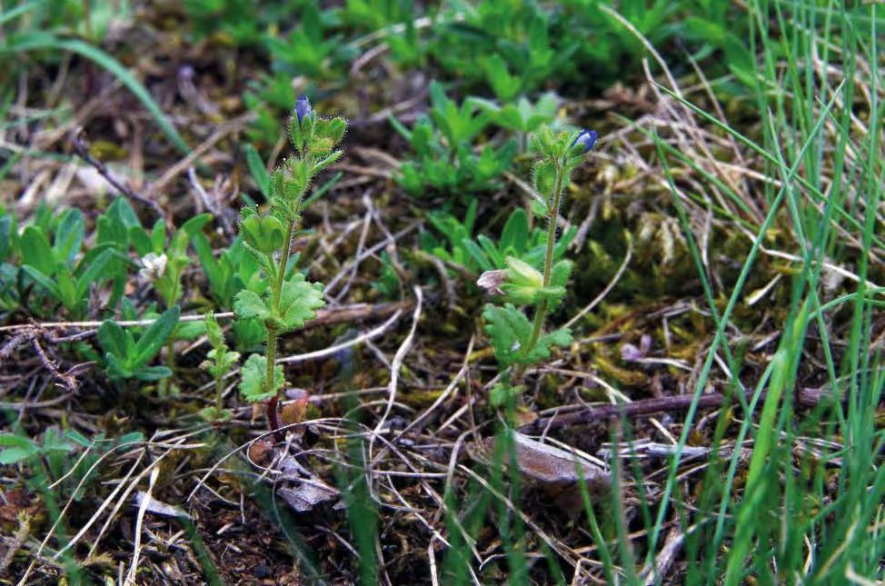 Rozrazil Dilleniův, 5 cm vysoká modrokvětá letnička, provází pochybek severní