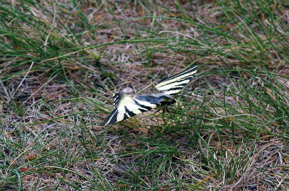 stlačená dolů a k sobě jako můry. Předlohou pro malíře asi byl špatně provedený, idealizovaný preparát usmrceného motýla. Připadl jsem na “motýlí myšlenku”, že bych se mohl jako fotograf blýsknout nějakým “akčním snímkem” otakárka ovocného. I v tomto případě mne Perun vyslyšel a po chvíli jsem spatřil havárii jednoho z motýlů, sraženého náhlým větrným poryvem do trávy. Byl jsem blízko, podařilo se zaostřit, fotoaparát spustil. S pýchou k povídce zařazuji snímek právě havarovaného otakárka ovocného, s křídly ne právě vyrovnanými, jenž v další vteřině opět vzlétl.