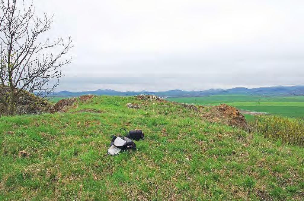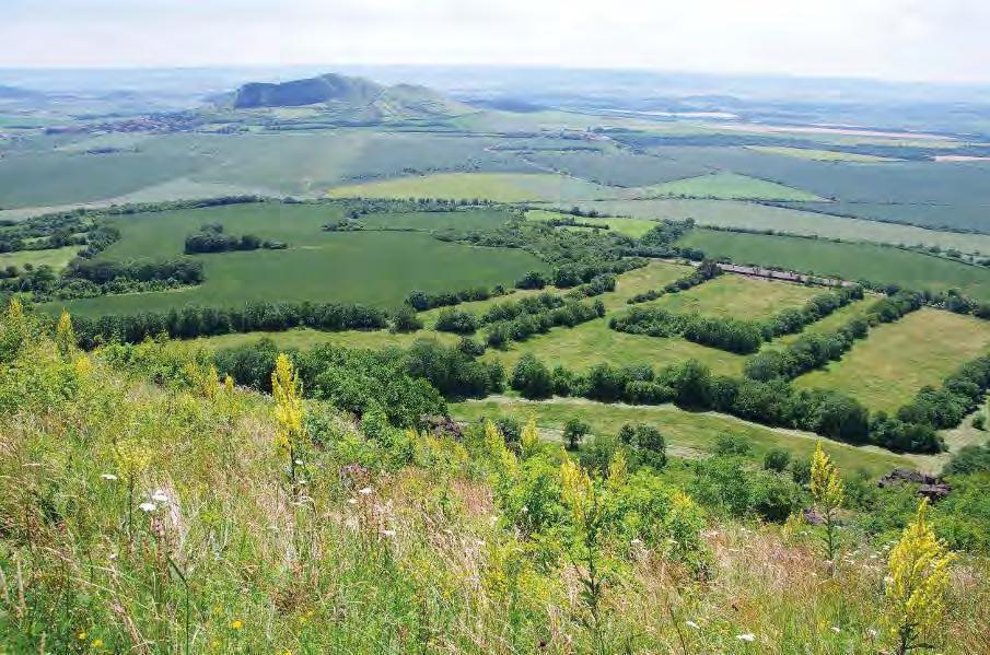 V popředí skalní step na Milé, uprostřed krajina obhospodařovaná od doby kamenné, v pozadí další význačná stepní lokalita Raná