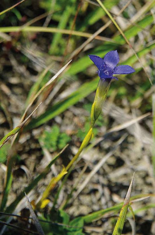 sledovaný hořec brvitý (Gentiana ciliata), kvetoucí na podzim. Dalším příkladem jsou všechny druhy orchidejí rostoucí na bílých stráních, z nichž žádná by ve stepi nepřežila.