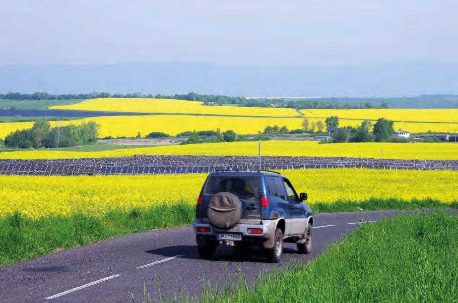 Krajina u Kostomlat pod Milešovkou podřízená „ekologickému“ dogmatu. Na půdě vysoké bonity je velká plocha umrtvena pod fotovoltaickou elektrárnou, ostatní plocha je zcela obětována obnovitelnému zdroji čili řepce, vysévané kvůli výrobě paliv pro automobily. Tam jsou opakovaně rozprašovány jedovaté pesticidy a jsou aplikována anorganická hnojiva, ničící humus, půdní organismy i půdní strukturu. V silném automobilu jede jediná osoba. Pod asfaltem se nemůže zasakovat žádná voda, přesto silnic, včetně nedaleké dálnice, přibylo. Měl jsem o tom také psát? Vyhýbám se tomu, jak to jde, to na úvod slibuji. Půjdeme krajinami krásnými, jako je ta s Hazmburkem, fotografovaná od Slatiny