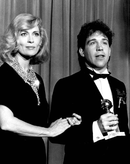 Tom Hulce, predstaviteľ Amadea a Faye Dunaway pri odovzdávaní cien Golden Globe Awards v roku 1985