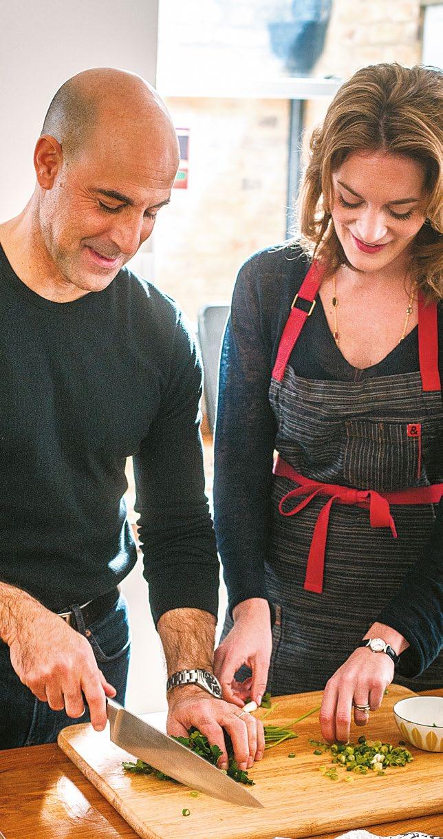 V obou našich rodinách, u Tucciových i Bluntových, hrálo společné stolování vždy zcela zásadní roli, a tak tato kniha vzdává hold našim kulinářským kořenům (z mé strany po prarodičích a rodičích, ze strany Felicity po matčině babičce) a ráda by se s čtenáři podělila o kulinářské tradice, které se snažíme uchovat pro další generaci. Recepty, jež v ní najdete, jsou odvozené od pokrmů, na nichž jsme si s Felicity pochutnávali v restauracích, u přátel nebo které jsme společně v posledních několika letech sami vytvořili. Jde o směs britských a italsko-amerických chutí, o nichž jsme přesvědčení, že si zaslouží dostat písemnou podobu, aby se s nimi mohli seznámit všichni, kdo milují vaření a jídlo stejně jako my. Pod vedením naší milé přítelkyně Kay Plunkett-Hoggeové, obdařené mimořádnými kulinářskými znalostmi, talentem, literárními dovednostmi, trpělivostí, humorem a neutuchající fantazií, jsme tak společně vytvořili knihu, jakou jsme si vysnili.